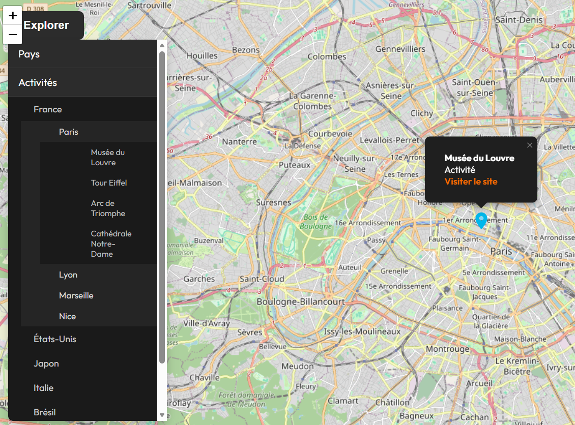 Pour découvrir les activités d’un pays ou d’une ville, cliquez simplement sur la ville souhaitée. Vous aurez alors accès à toutes les informations pertinentes, y compris les monuments et lieux incontournables à visiter.